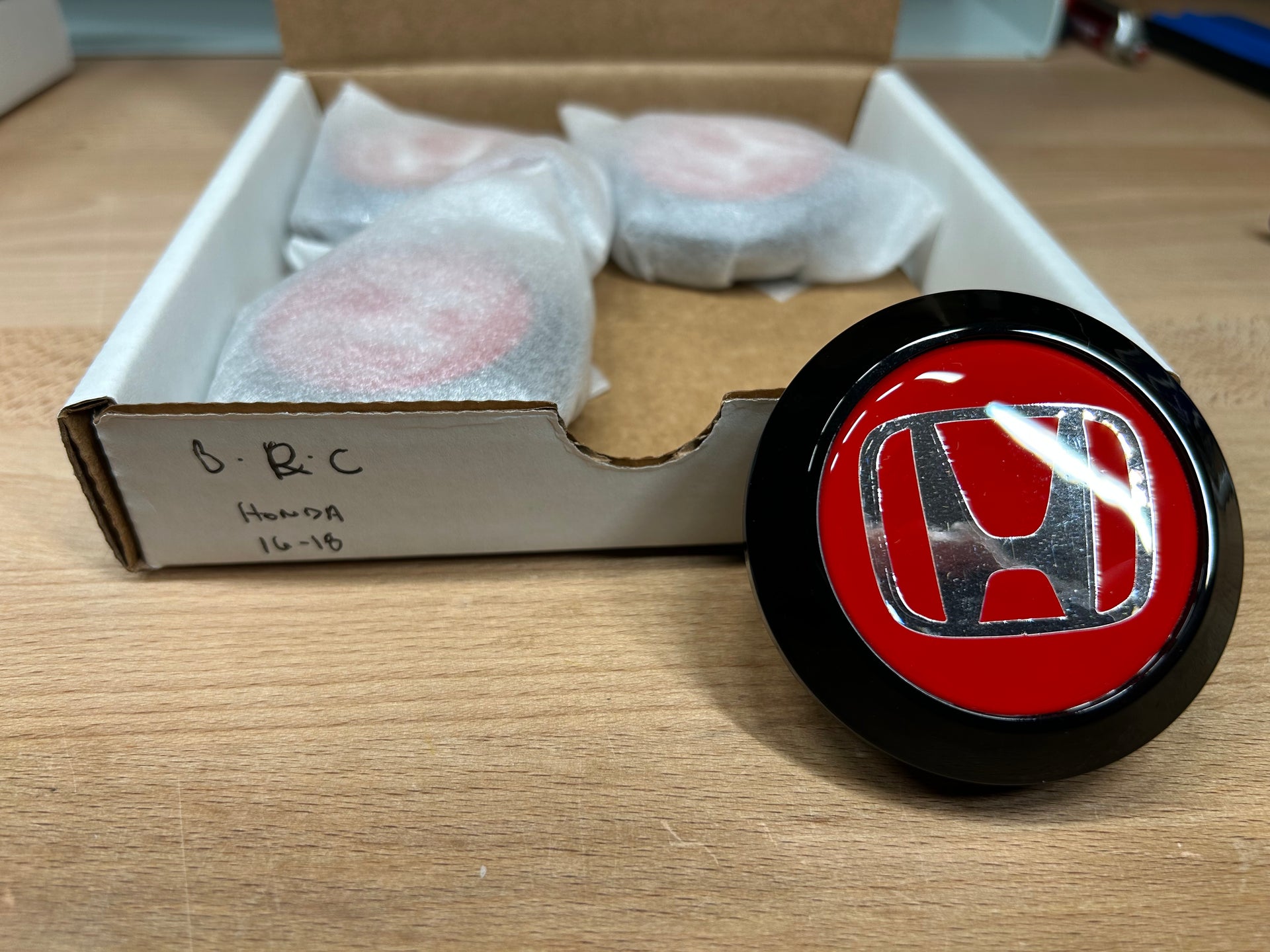 Set of 4 custom center caps designed to fit 16"–18" Enkei RPF1 wheels (also fits 15x8 +28 models) OR 15x7 Enkei RPF1 wheels