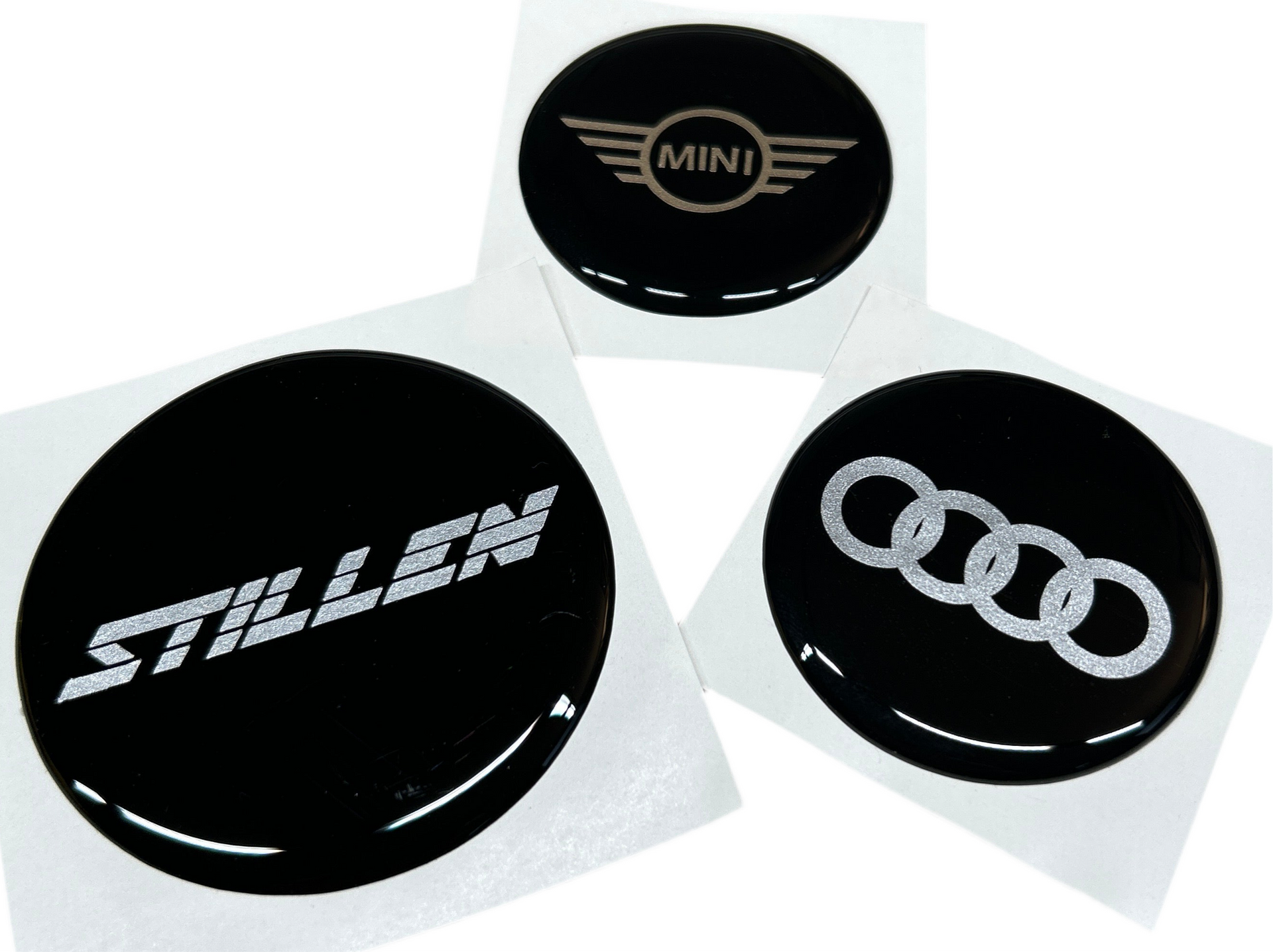 ⚠️ The surface of your center caps must be completely flat for proper adhesion and the resin needs to be heated up with a hair dryer or heat gun before applying them to your caps.